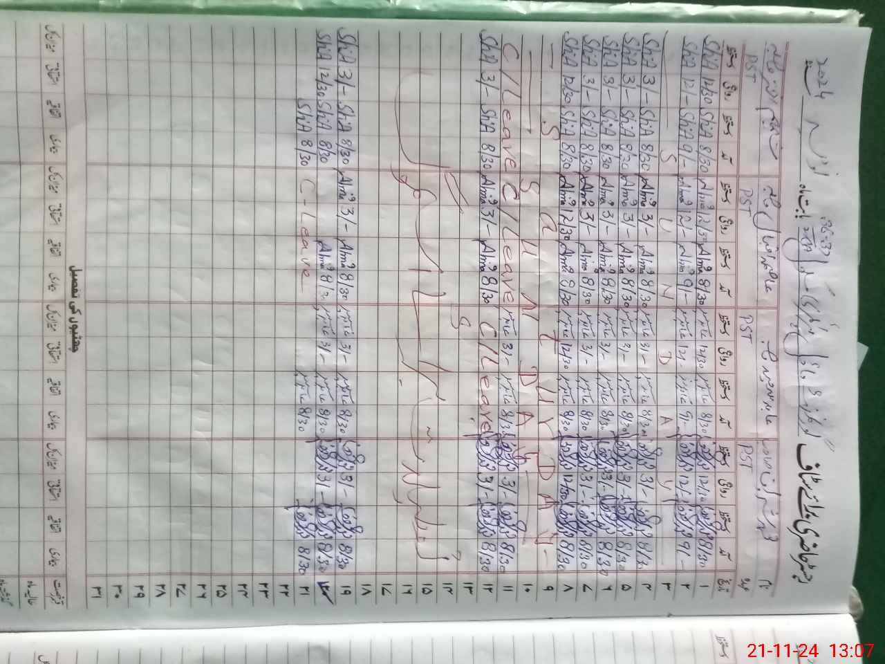 | CNIC | Full Name | Designation | R/C | Absence During Last Calender Month |