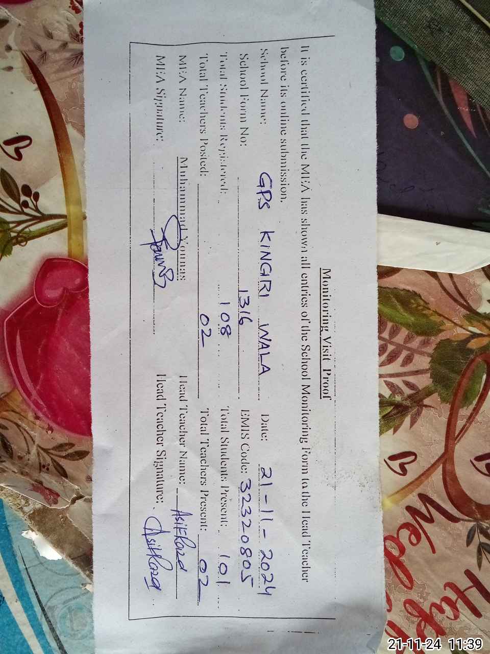 | EMIS Code: 32320805 | Name of School: GPS KINGRI WALA | |||