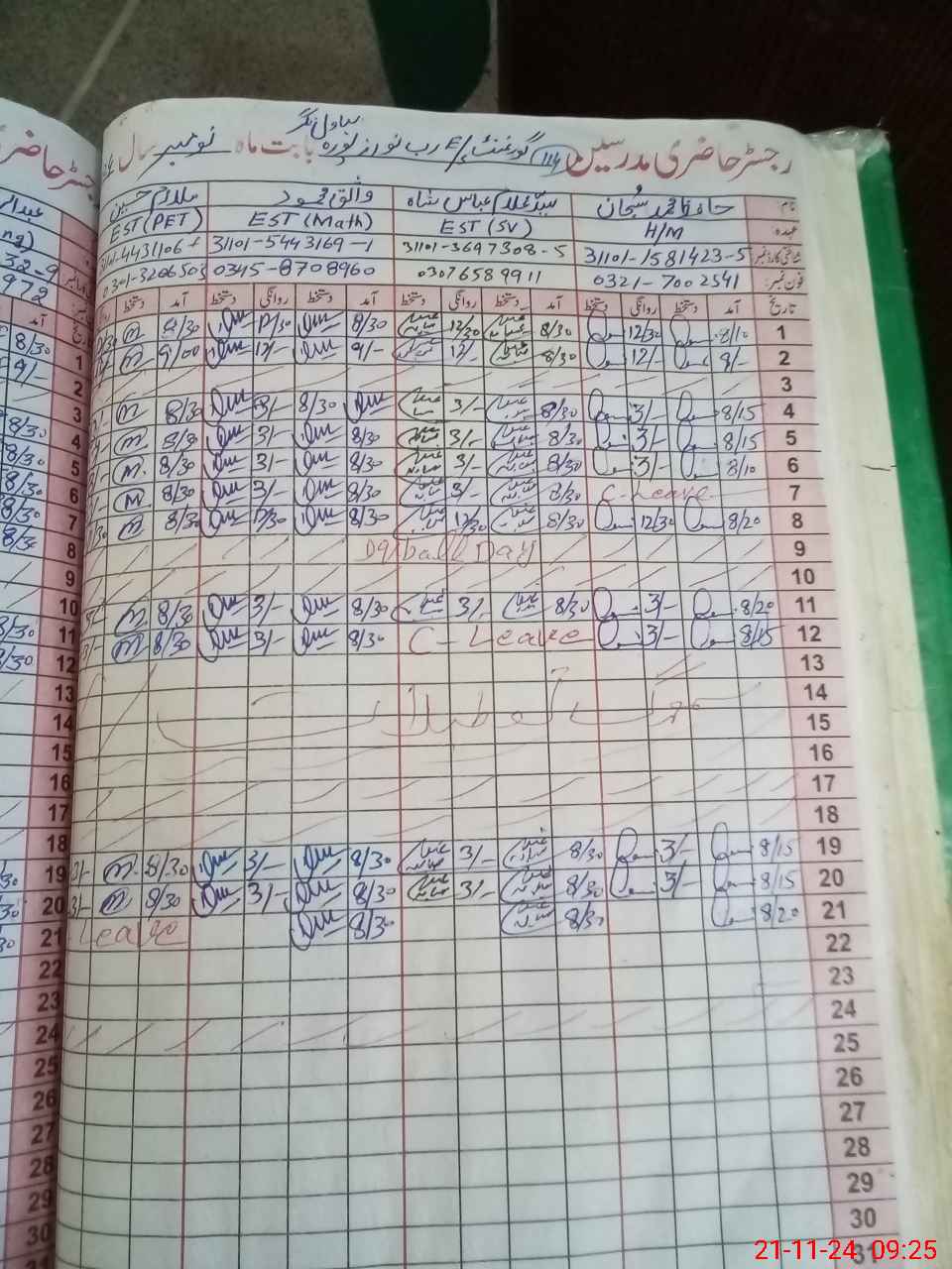 | CNIC | Full Name | Designation | R/C | Absence During Last Calender Month |
