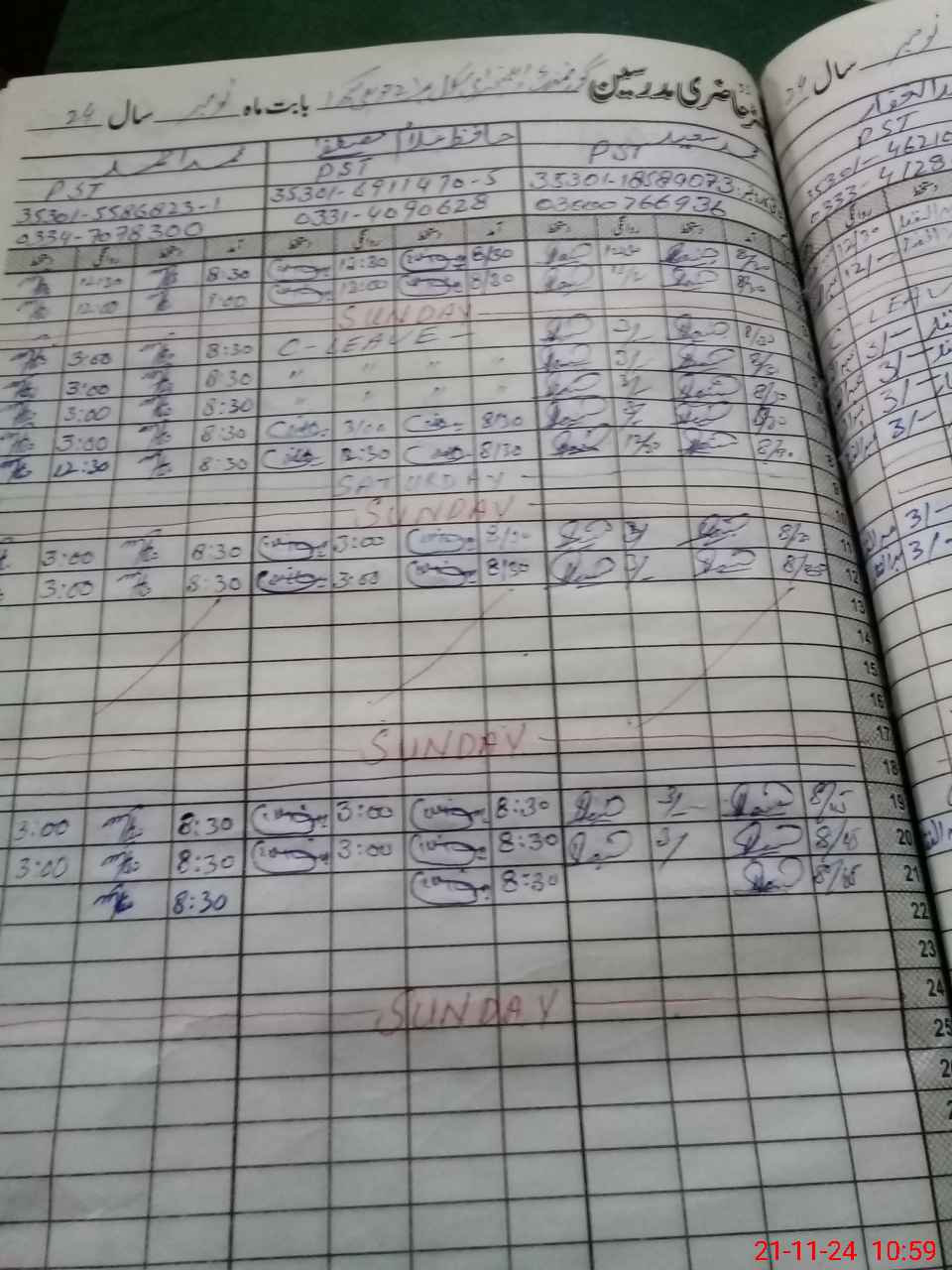 | CNIC | Full Name | Designation | R/C | Absence During Last Calender Month |
