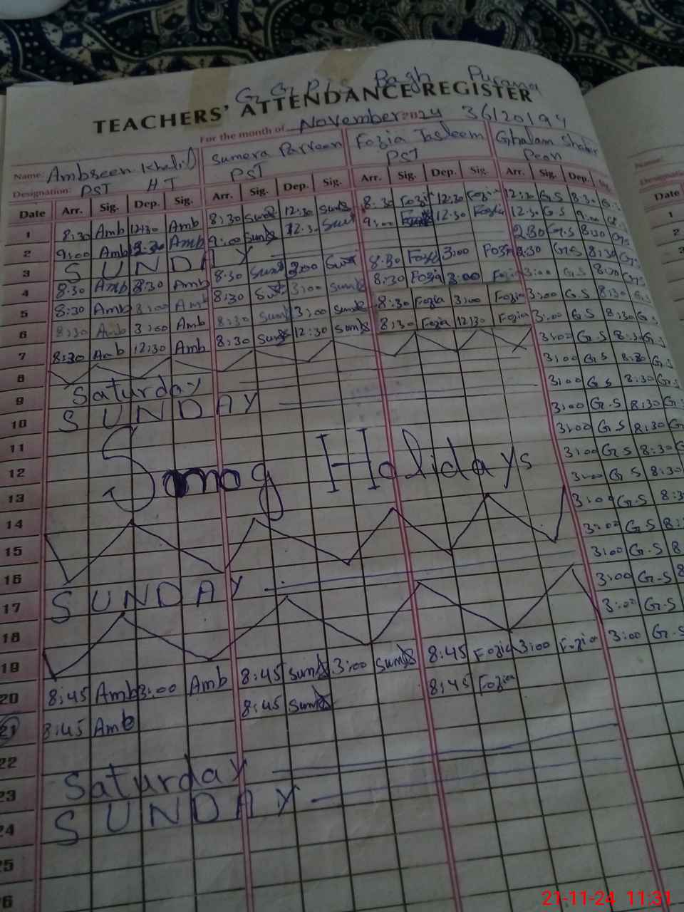 | CNIC | Full Name | Designation | R/C | Absence During Last Calender Month |