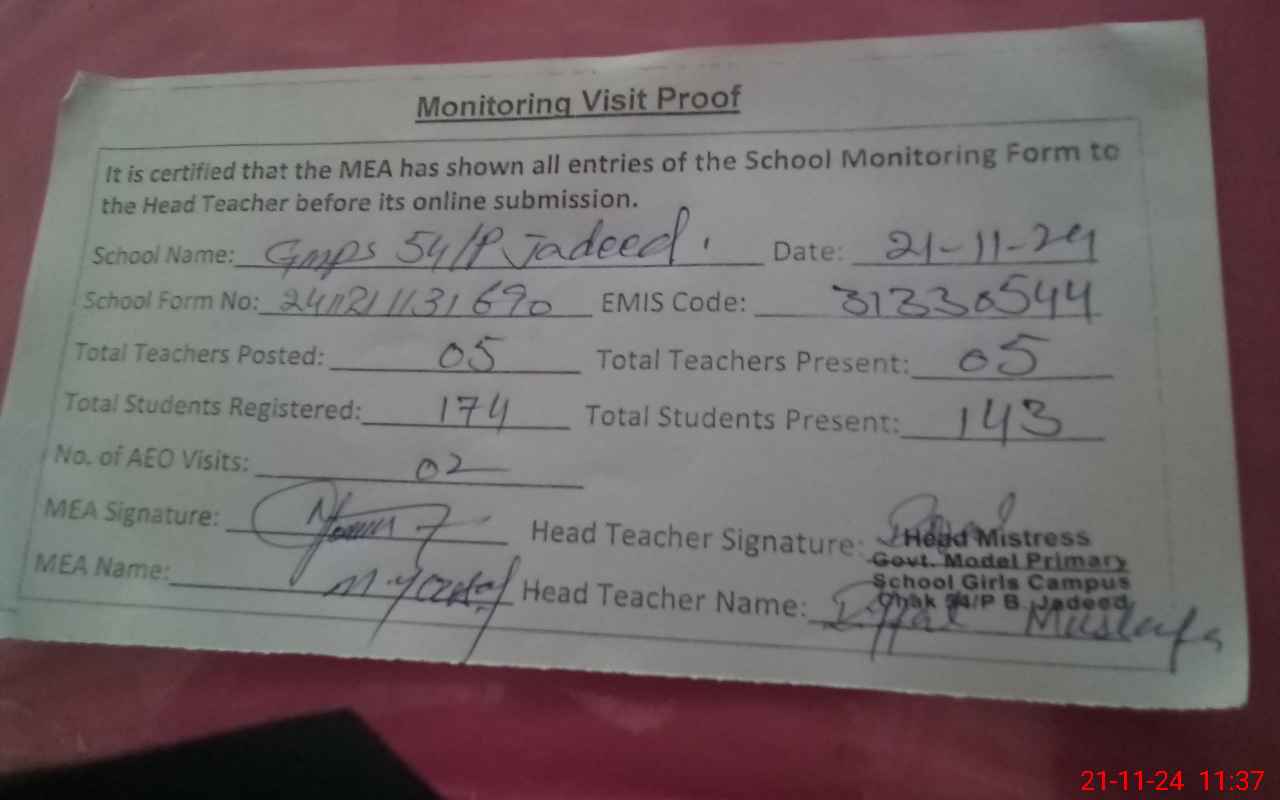 | EMIS Code: 31330544 | Name of School: GMPS 54/P JADEED | |||