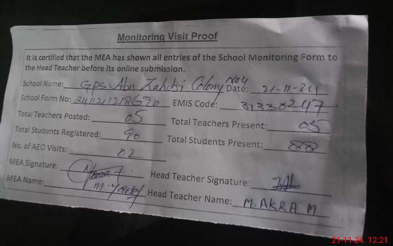 | EMIS Code: 31330247 | Name of School: GPS ABU ZAHBI COLONY NO. 4 | |||
