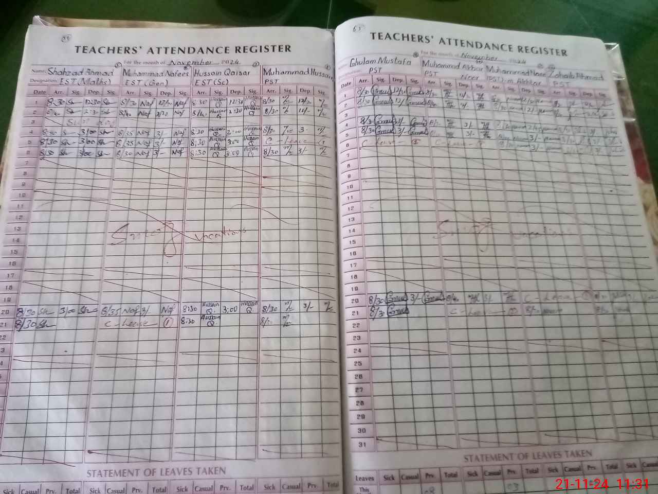 | Leave | Duty | Absent | Maternity | Medical | Ex- Pak |