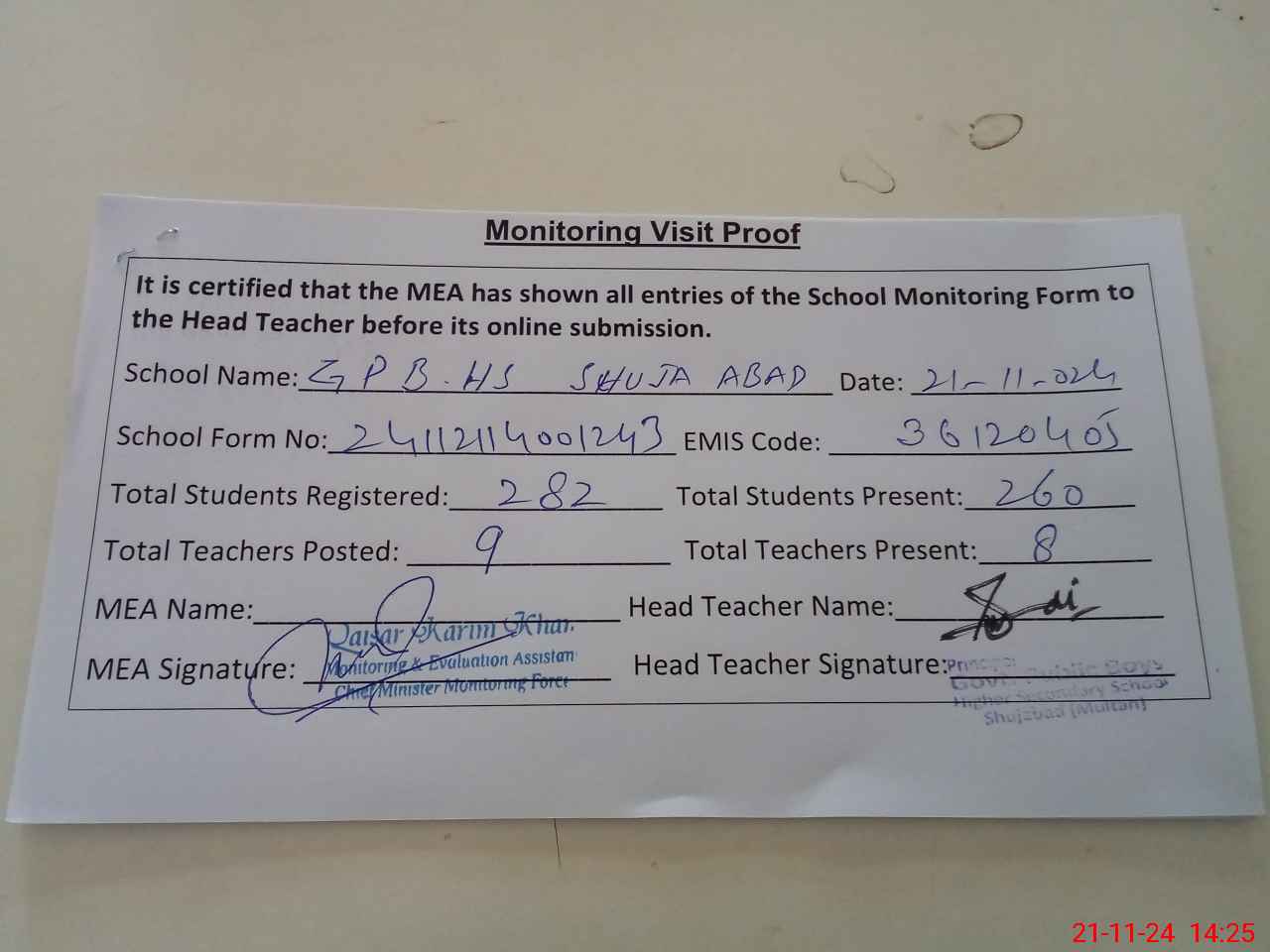 | EMIS Code: 36120405 | Name of School: Govt. Public Boys Higher Secondary School Shujabad | |||