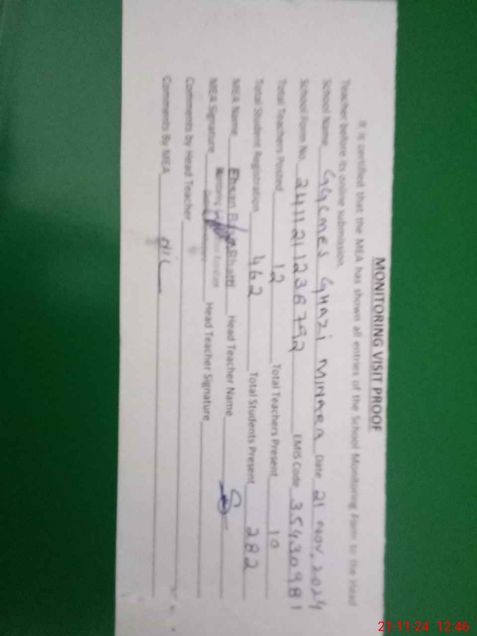 | EMIS Code: 35430981 | Name of School: GGCMES GHAZI MINARA | |||