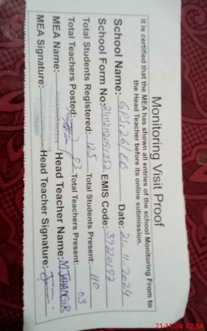 | EMIS Code: 39220197 | Name of School: GPS 26/EB | |||