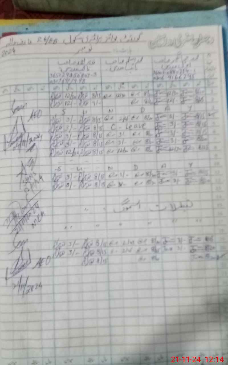 | CNIC | Full Name | Designation | R/C | Absence During Last Calender Month |