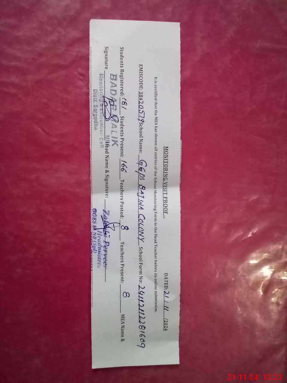 | Certified that this School was Inspected by the Undersigned MEA/DMO Today and the Information Stated Above is as Per Record. | |||||