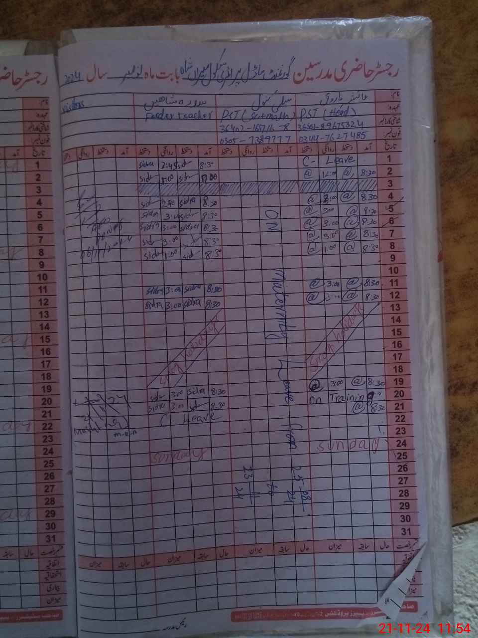 | 36**** | Sa**** Ka**** | PST | Regular | 0 | 0 | 0 | 0 | 0 | 0 | 0 | 0 | 0 | Maternity |