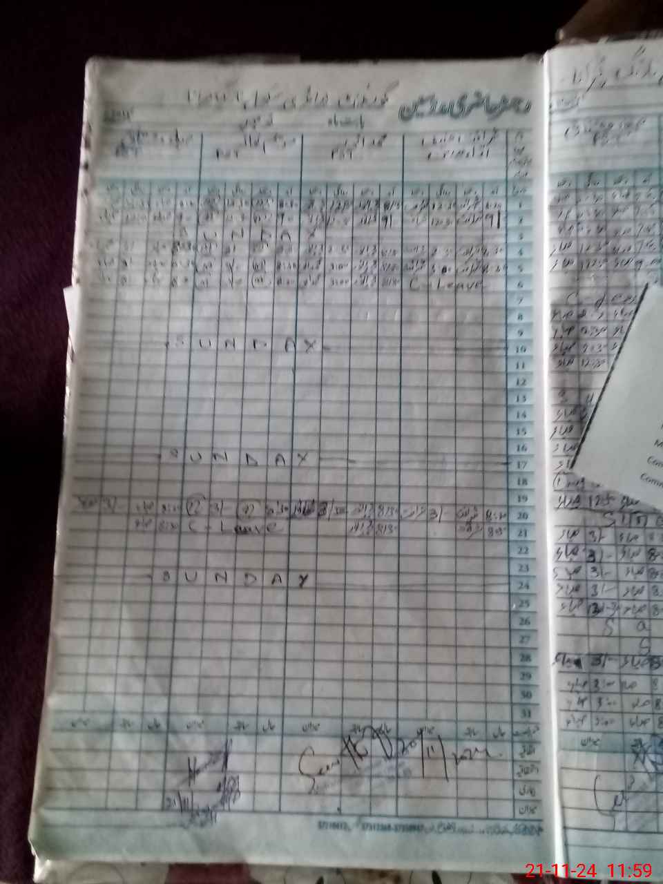 | CNIC | Full Name | Designation | R/C | Absence During Last Calender Month |