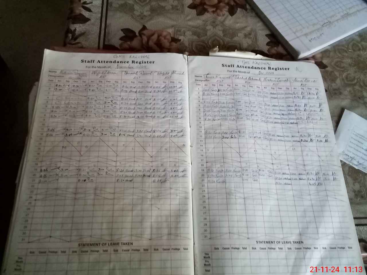 | CNIC | Full Name | Designation | R/C | Absence During Last Calender Month |