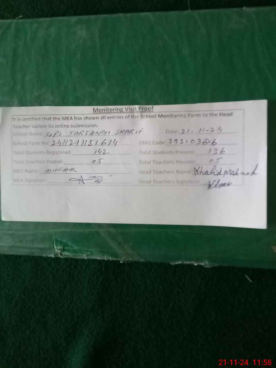 | EMIS Code: 39310386 | Name of School: GPS TARSANGI SHARIF | |||