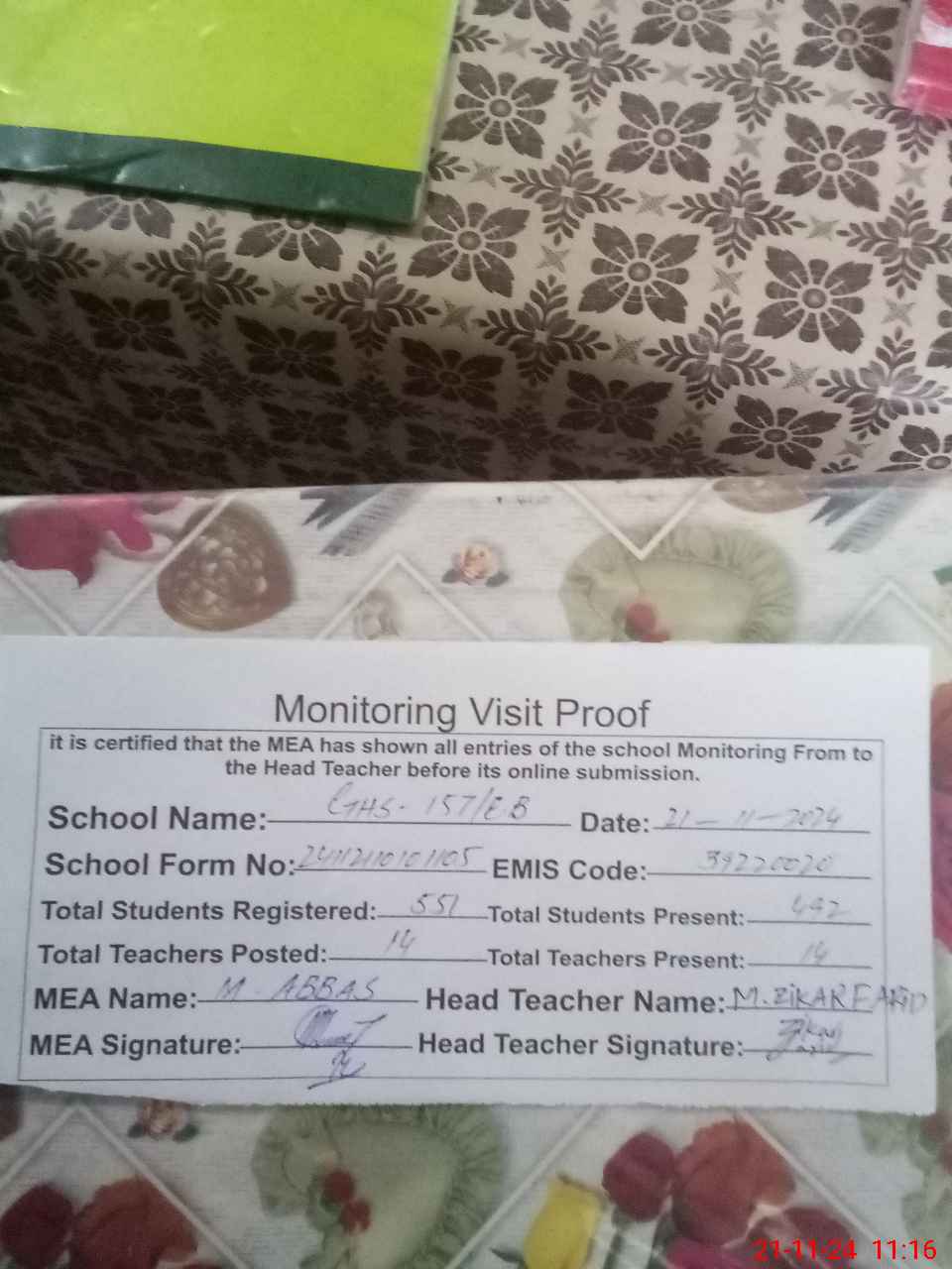 | EMIS Code: 39220020 | Name of School: GHS 157/EB | |||