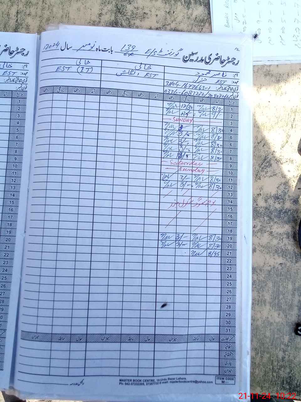| CNIC | Full Name | Designation | R/C | Absence During Last Calender Month |