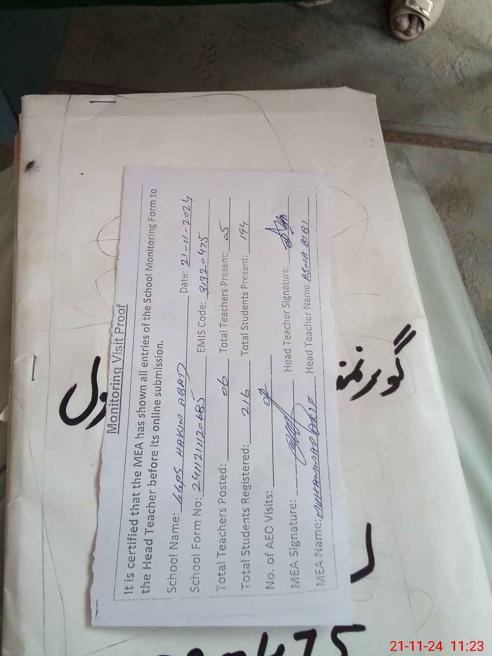 | Certified that this School was Inspected by the Undersigned MEA/DMO Today and the Information Stated Above is as Per Record. | |||||