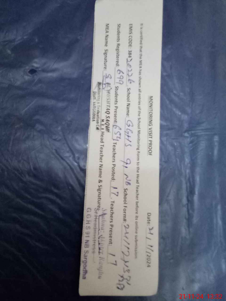 | EMIS Code: 38420226 | Name of School: GGHS CHAK NO.91 NB | |||