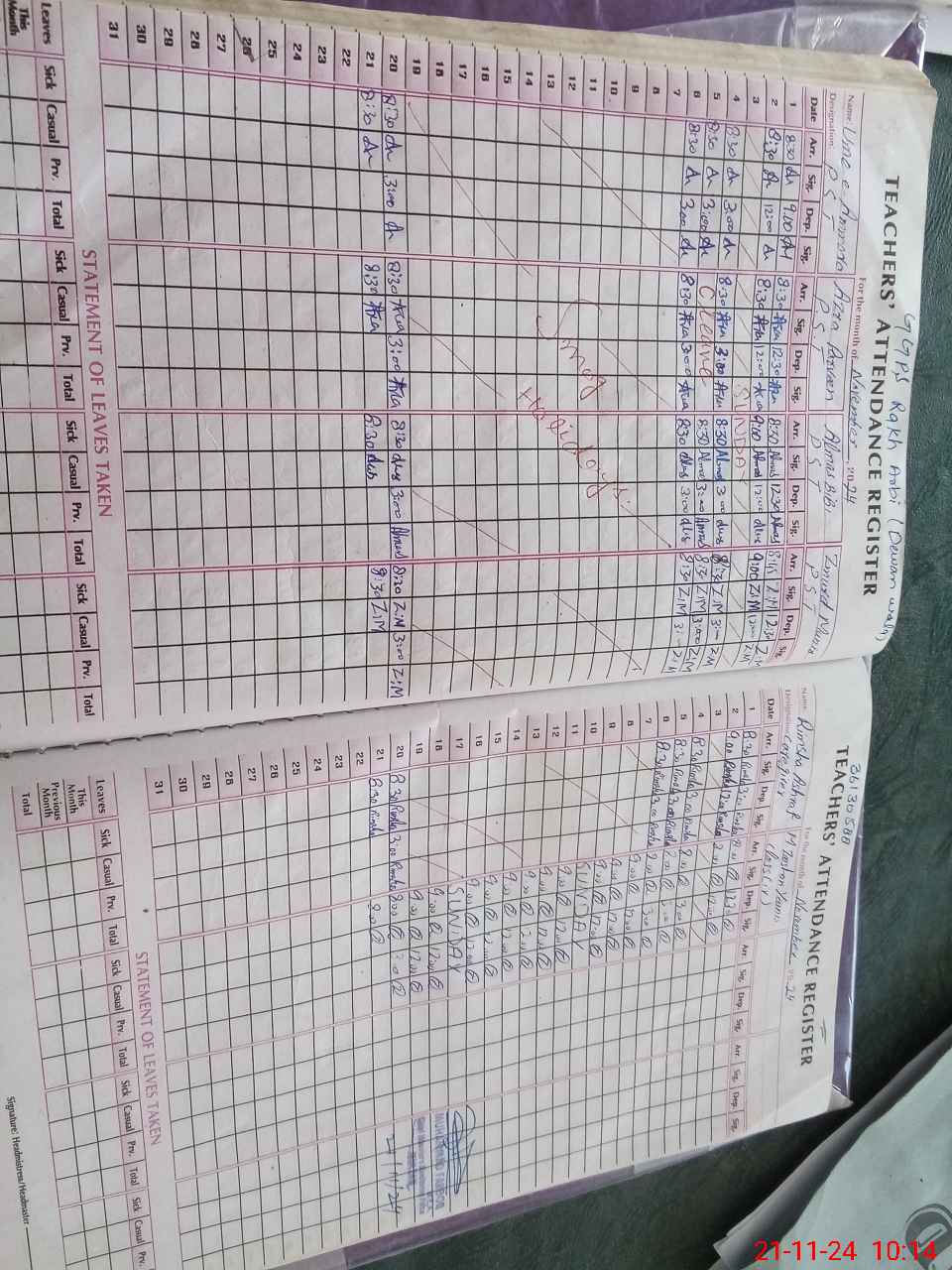 | CNIC | Full Name | Designation | R/C | Absence During Last Calender Month |