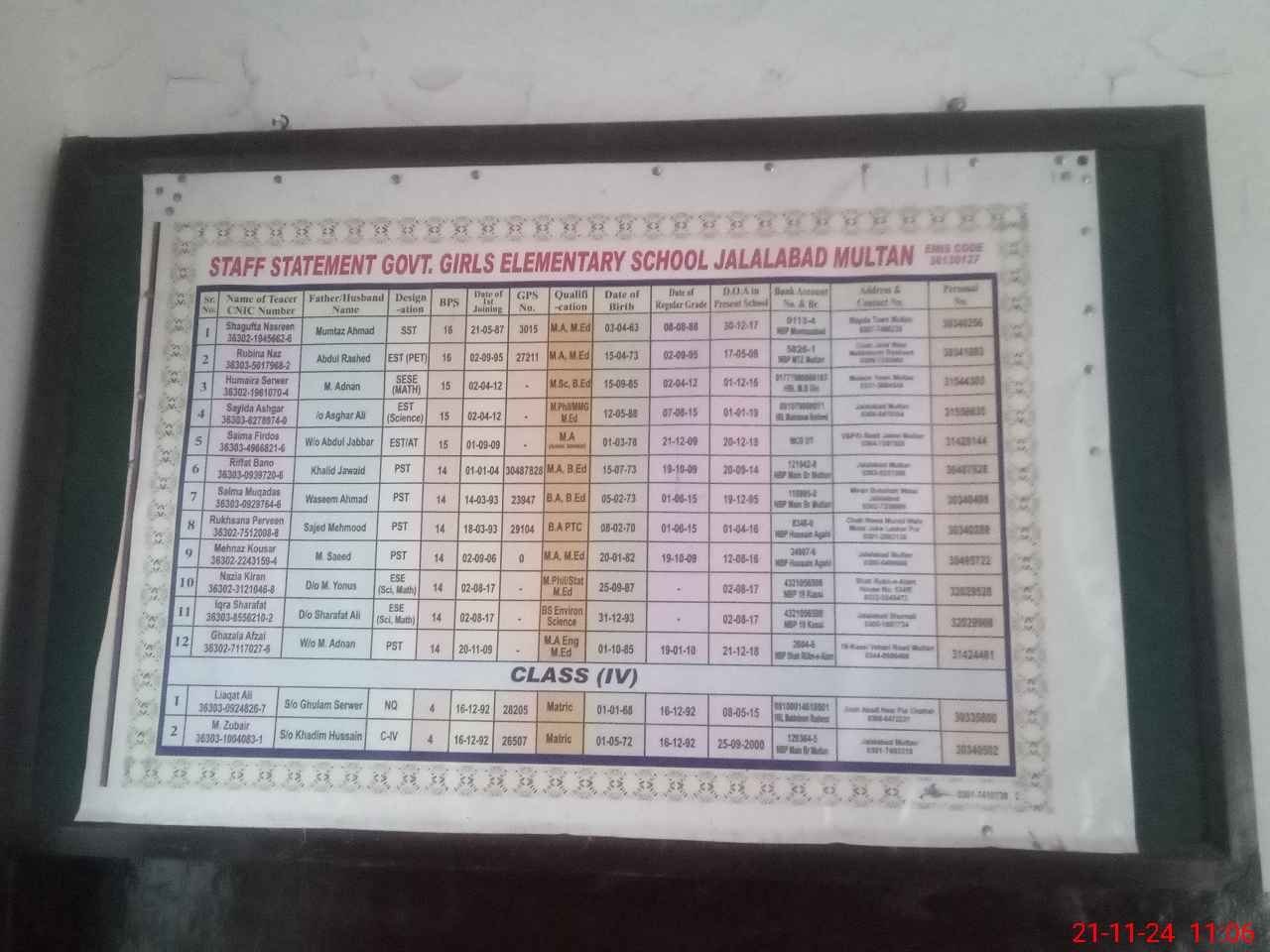 | Name: Sa**** Qa**** Designation: (School Headmaster's/Headmistress's) Sst Phone/Cell Number: 03**** |