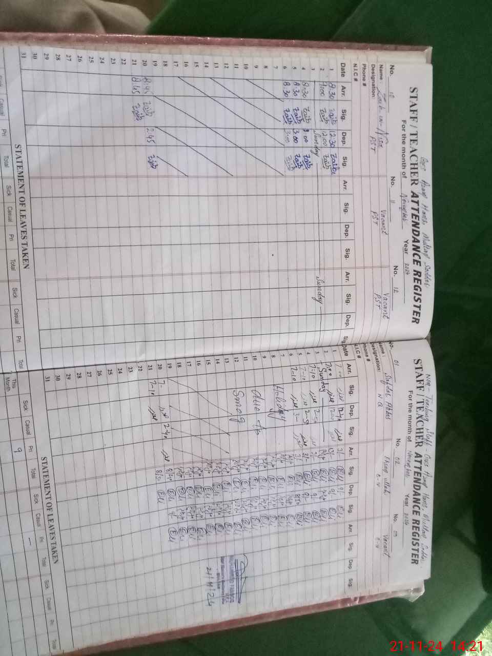 | CNIC | Full Name | Designation | R/C | Absence During Last Calender Month |