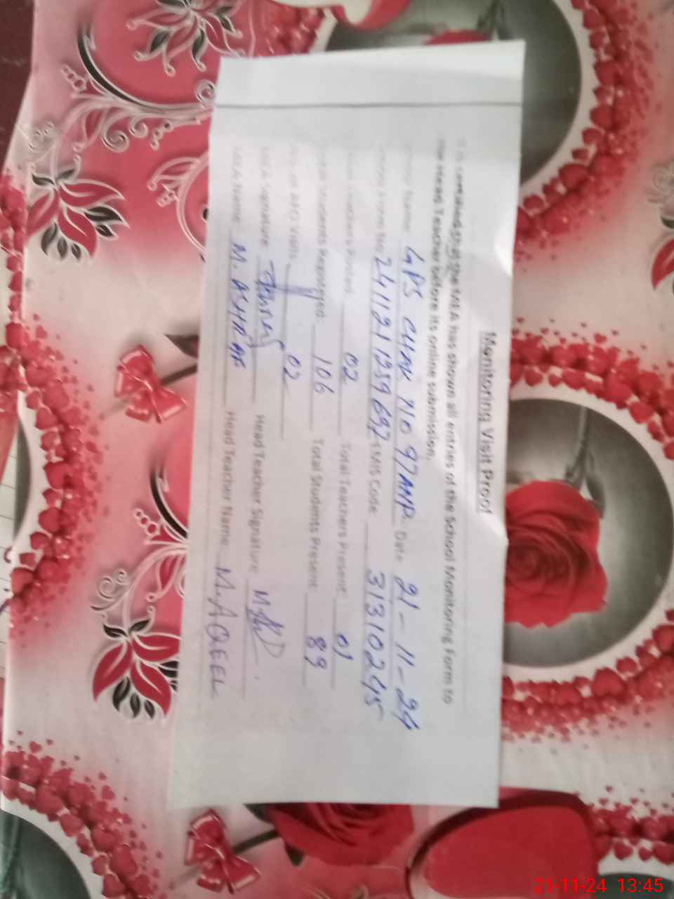 | Monitoring Date: 21-11-2024 | Start Time: 21-11-2024 12:59 PM | End Time: 21-11-2024 01:45 PM | Name of MEA: Mu**** As**** KP**** | |