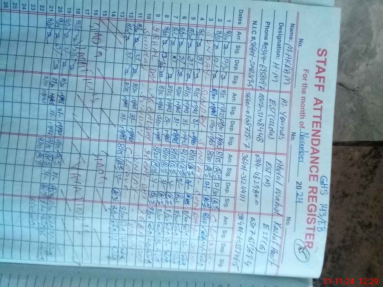 | Name: KA**** TA**** Designation: (School Headmaster's/Headmistress's) SST (SCI) Phone/Cell Number: 03**** |