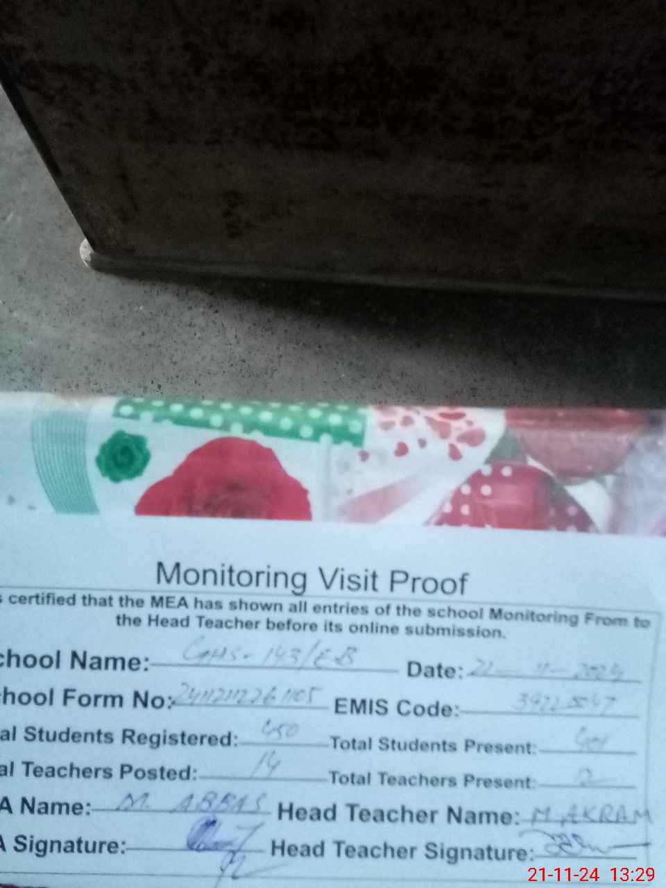 | EMIS Code: 39220047 | Name of School: GHS 143 EB PO 143 EB | |||