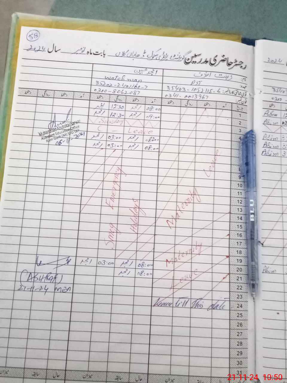 | Name: SH**** HU**** Designation: (School Headmaster's/Headmistress's) PST Phone/Cell Number: 03**** |