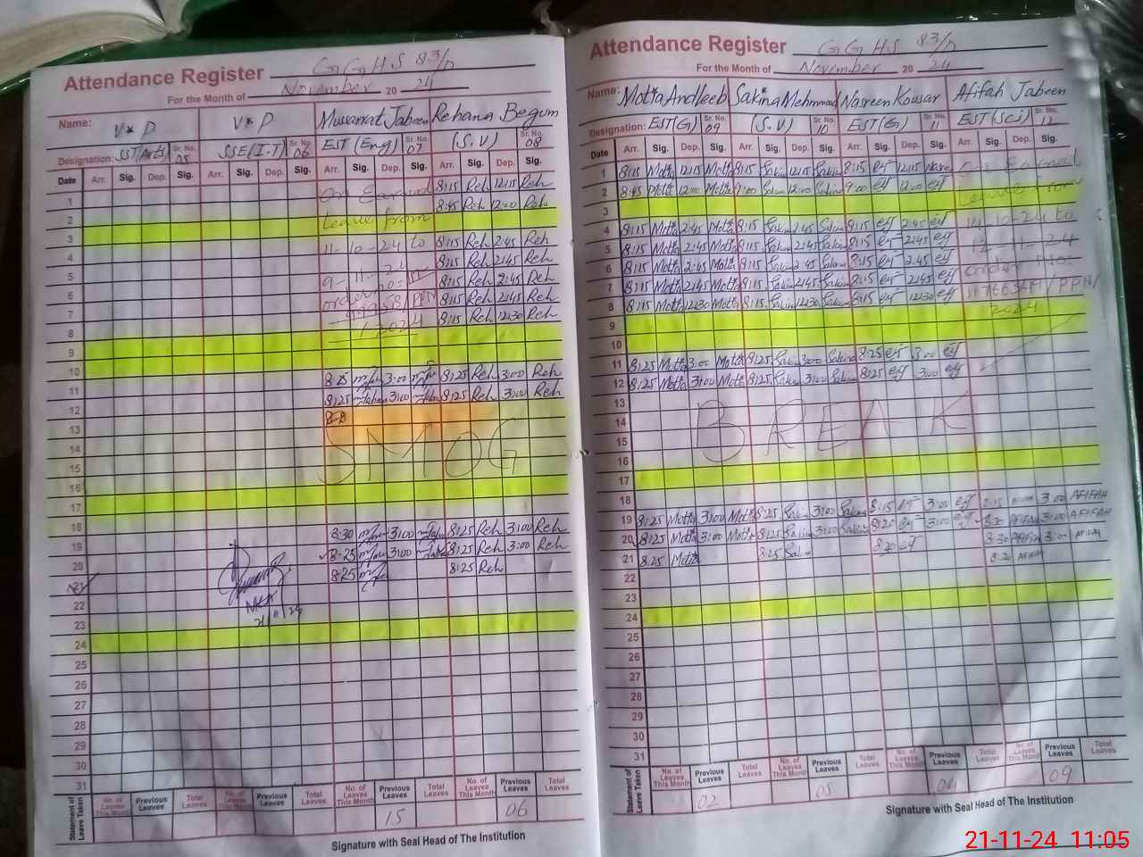 | Monitoring Date: 21-11-2024 | Start Time: 21-11-2024 10:53 AM | End Time: 21-11-2024 12:13 PM | Name of MEA: AM**** UL**** | |