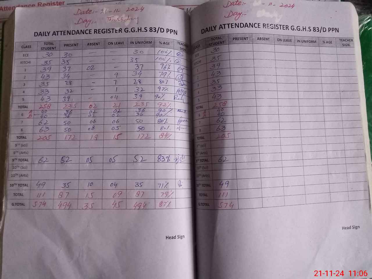 | Total Students Present | 30 | 0 | 35 | 39 | 38 | 30 | 32 | 39 | 72 | 48 | 45 | 52 | 36 | 496 | ||
