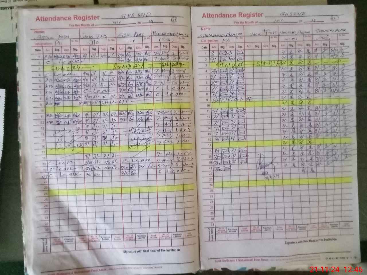 | CNIC | Full Name | Designation | R/C | Absence During Last Calender Month |