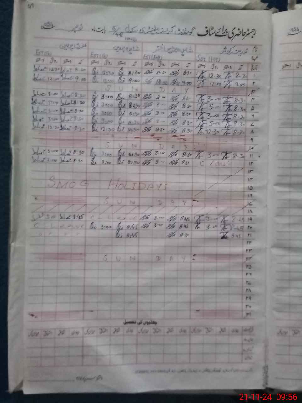 | CNIC | Full Name | Designation | R/C | Absence During Last Calender Month |