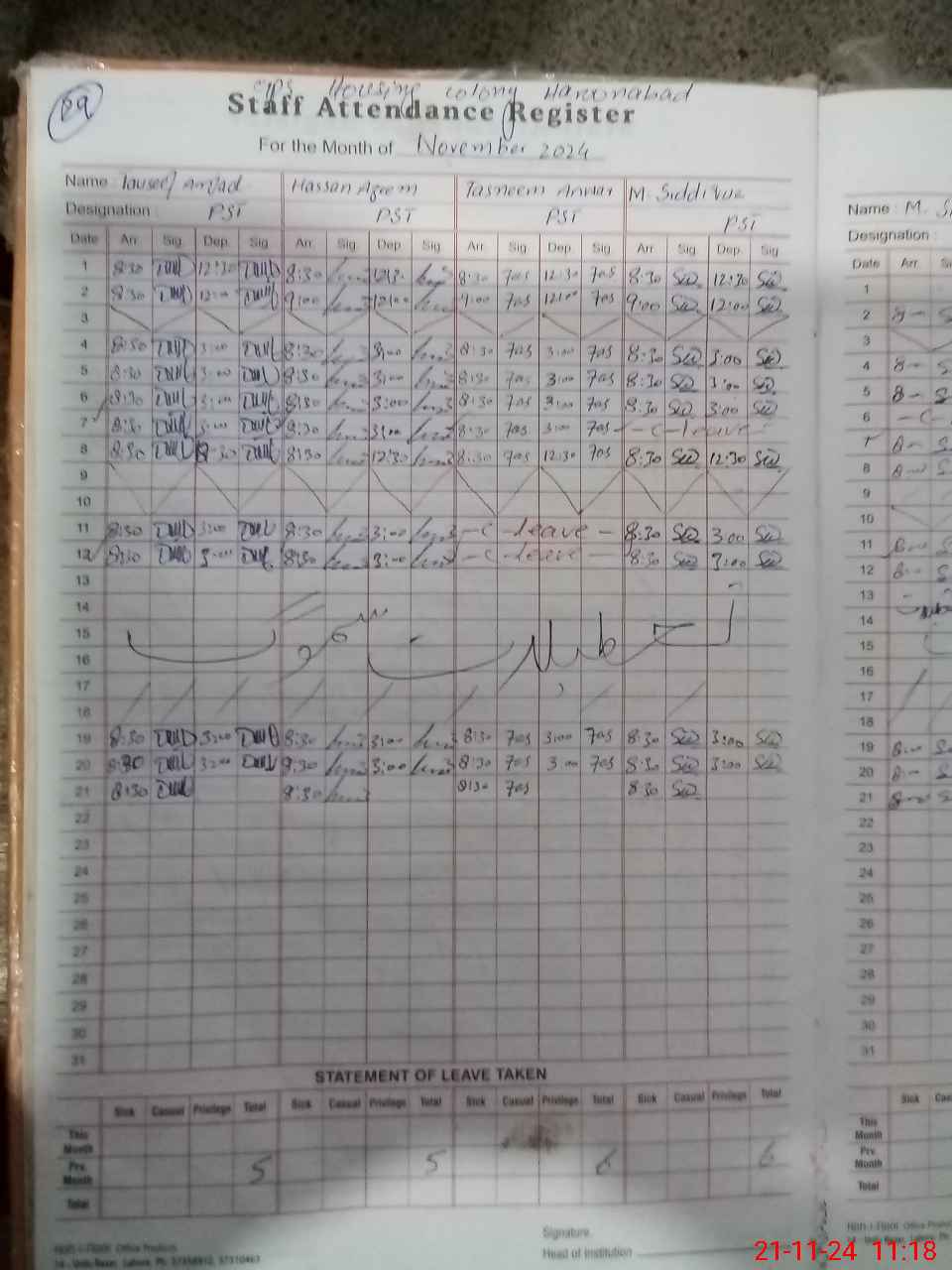 | CNIC | Full Name | Designation | R/C | Absence During Last Calender Month |
