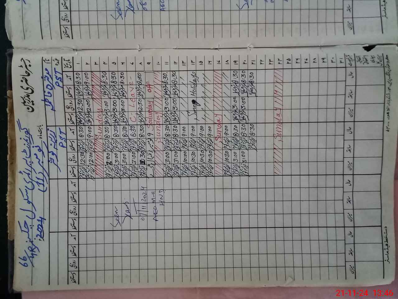 | CNIC | Full Name | Designation | R/C | Absence During Last Calender Month |