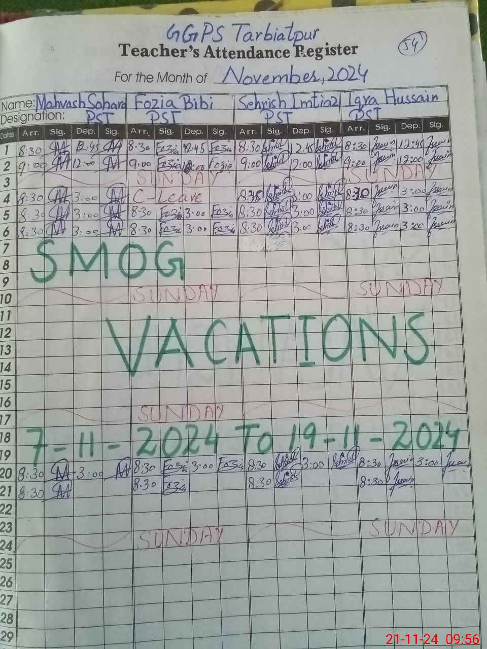 | Monitoring Date: 21-11-2024 | Start Time: 21-11-2024 09:22 AM | End Time: 21-11-2024 09:57 AM | Name of MEA: As**** Al**** | |