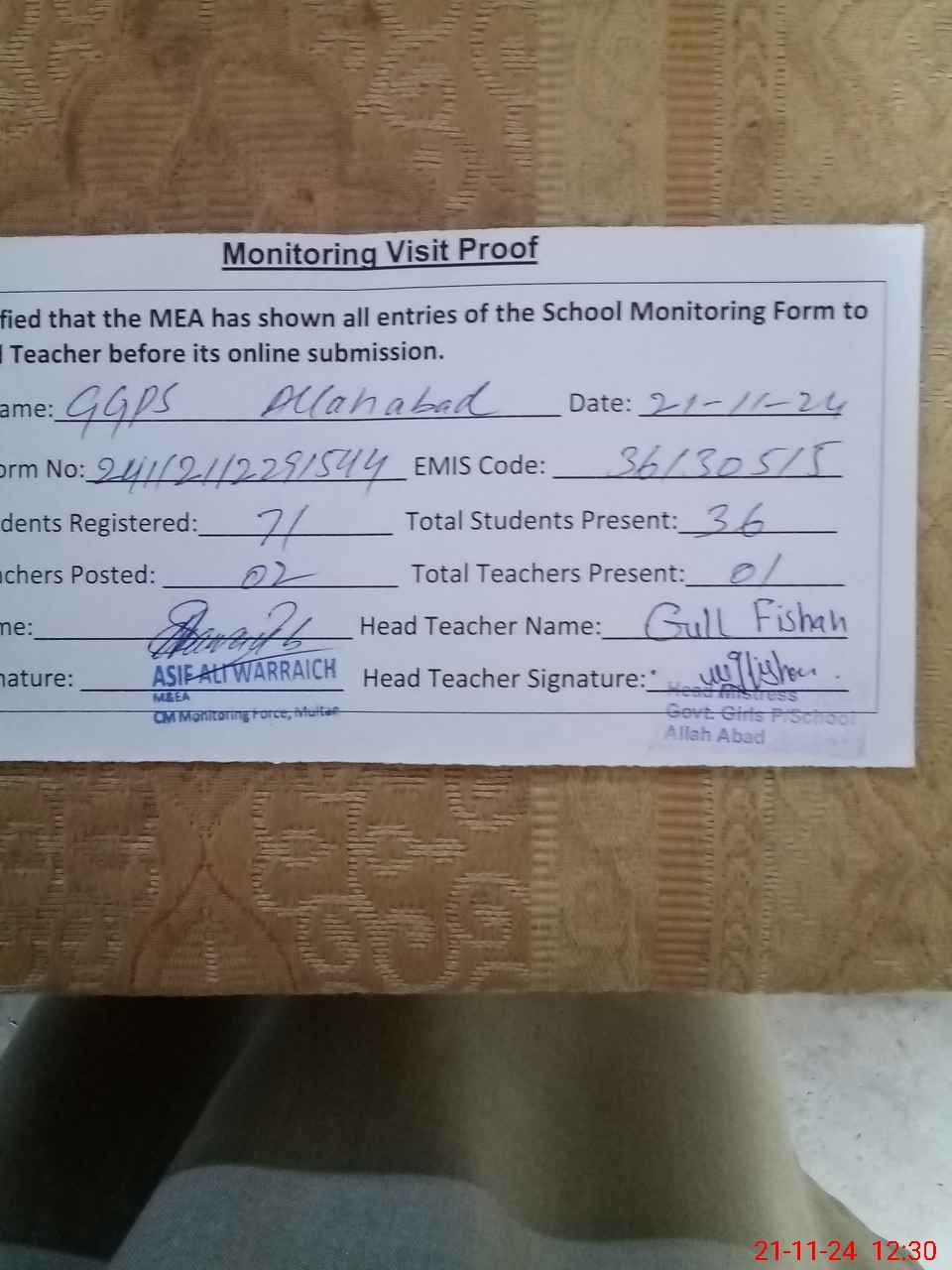 | EMIS Code: 36130515 | Name of School: GGPS ALLAH ABAD MULTAN | |||