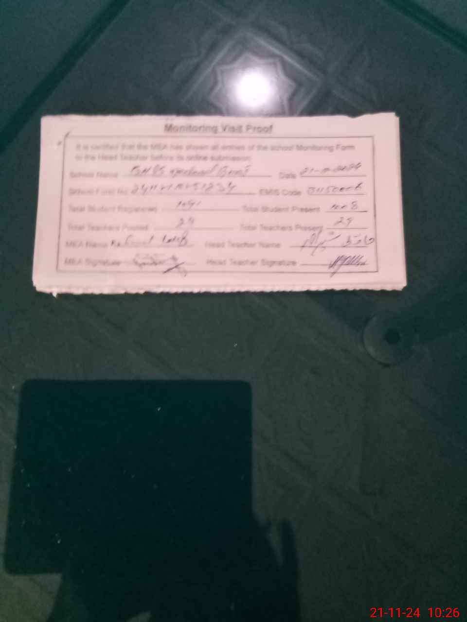 | Attendance Register | Head Teacher | MEA with School | Visit Proof |