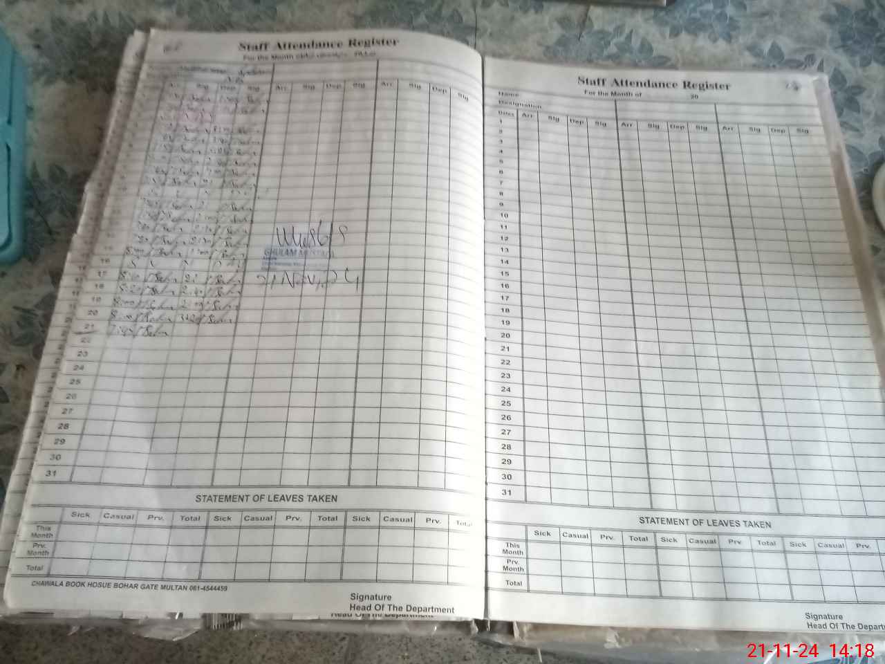| Remarks (Use Separate Page if Required): Data of teacher Muhammad awais is shown twice | |||||