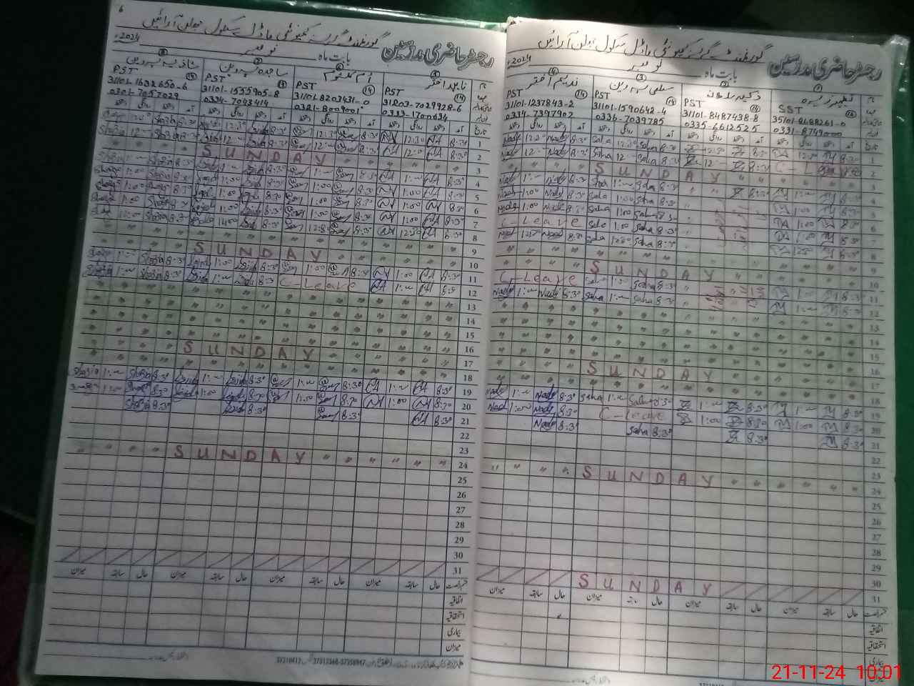 | CNIC | Full Name | Designation | R/C | Absence During Last Calender Month |