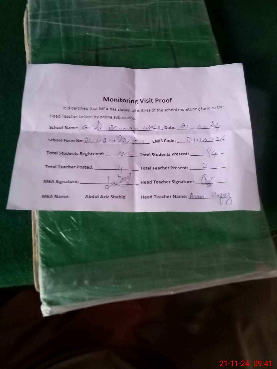 | EMIS Code: 31110336 | Name of School: GGPS JAHANAY WALA | |||