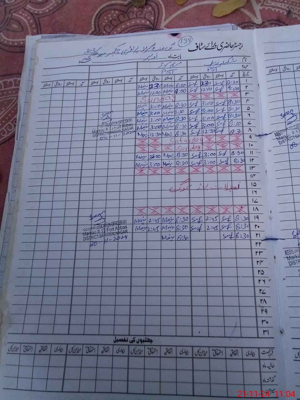 | CNIC | Full Name | Designation | R/C | Absence During Last Calender Month |