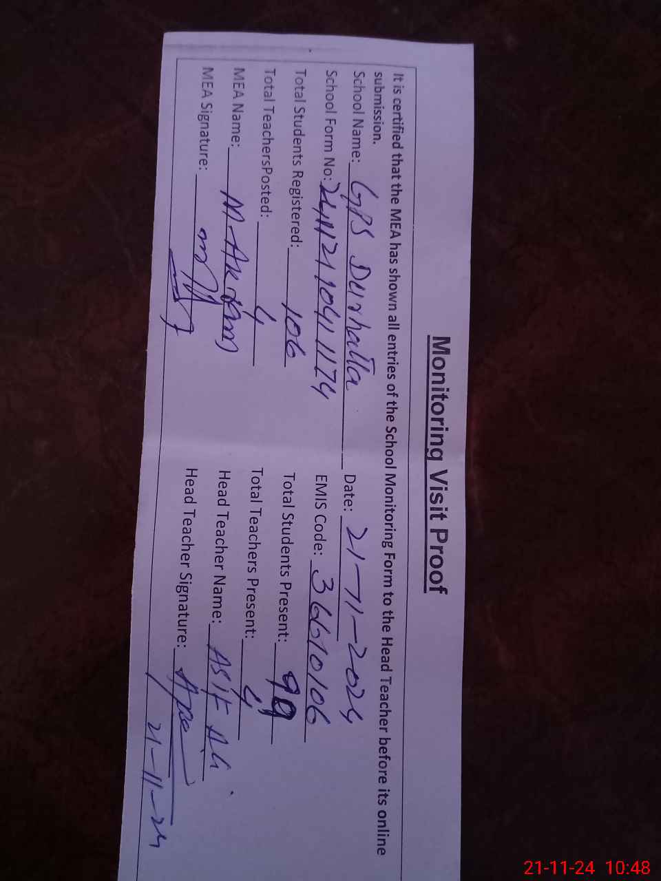 | EMIS Code: 36610106 | Name of School: GPS DURHATTA | |||
