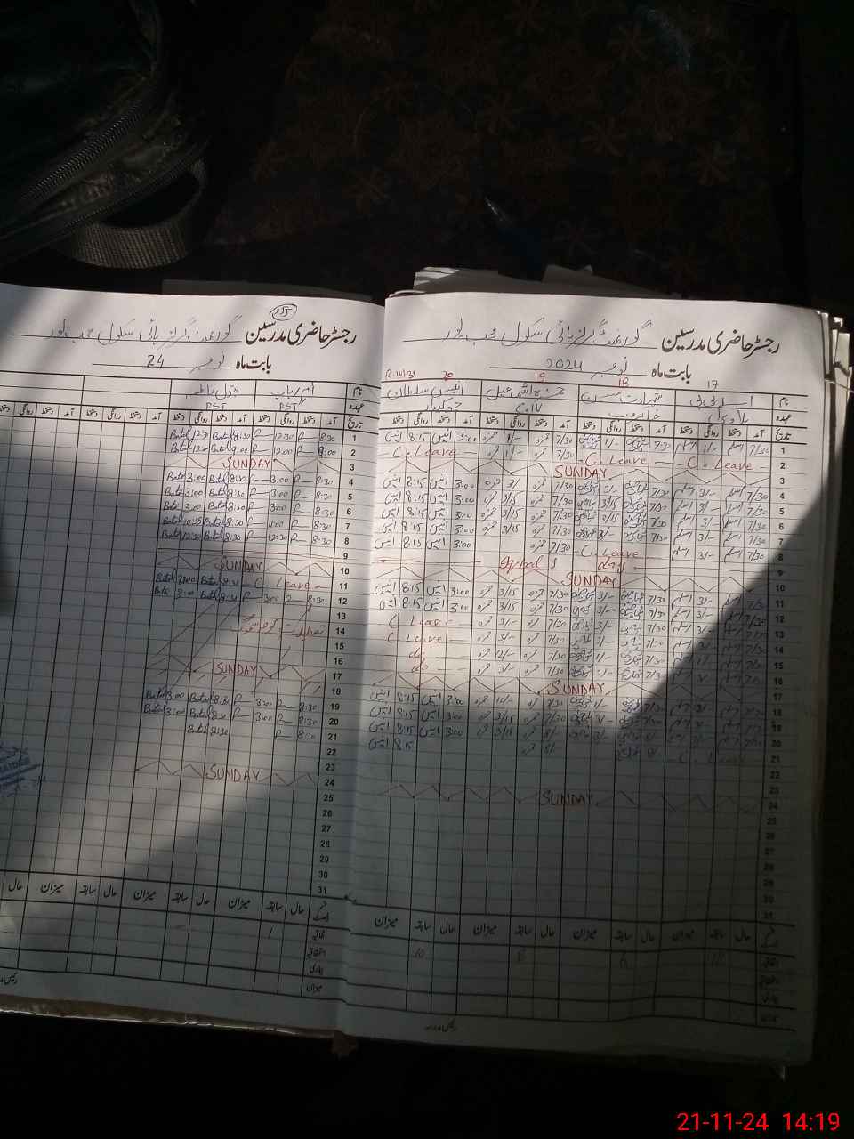 | CNIC | Full Name | Designation | R/C | Absence During Last Calender Month |