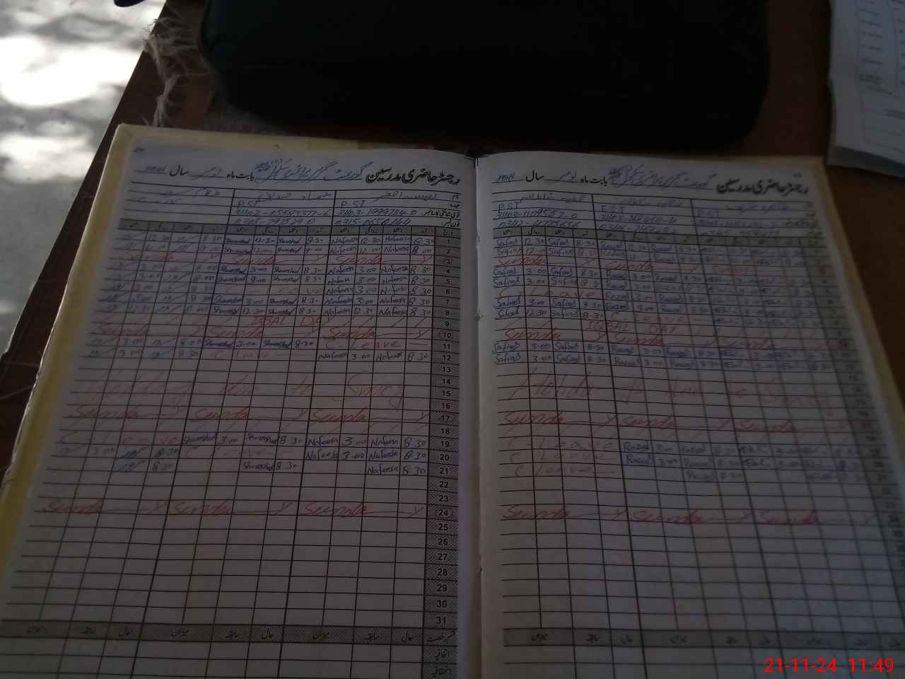 | CNIC | Full Name | Designation | R/C | Absence During Last Calender Month |