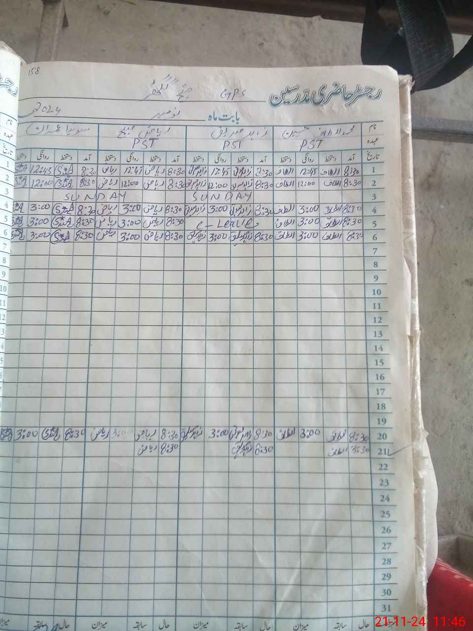 | CNIC | Full Name | Designation | R/C | Absence During Last Calender Month |