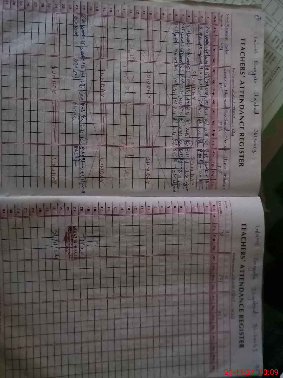 | CNIC | Full Name | Designation | R/C | Absence During Last Calender Month |