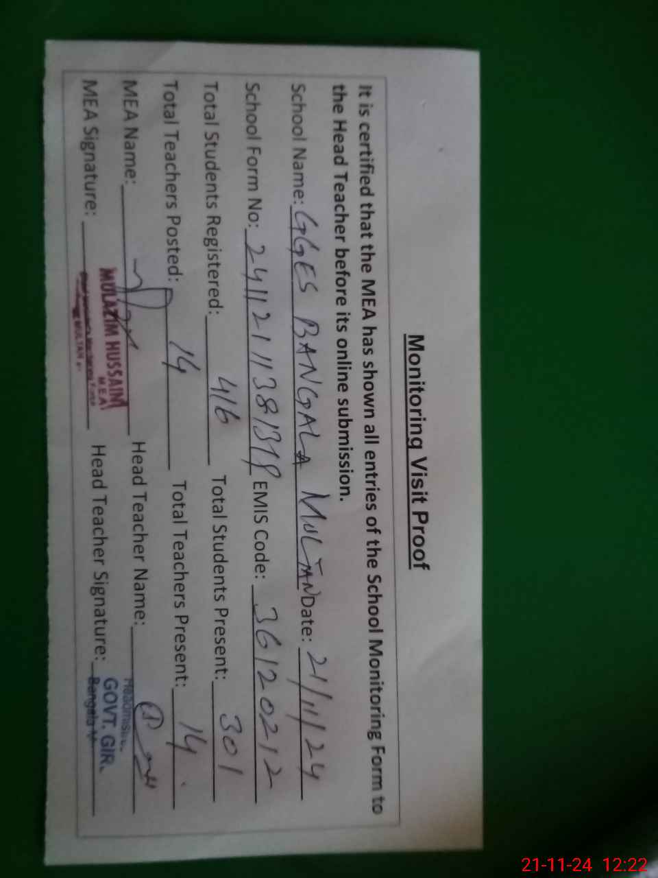 | EMIS Code: 36120212 | Name of School: GGES BANGALA MORE BASTI BANGALA MORE | |||