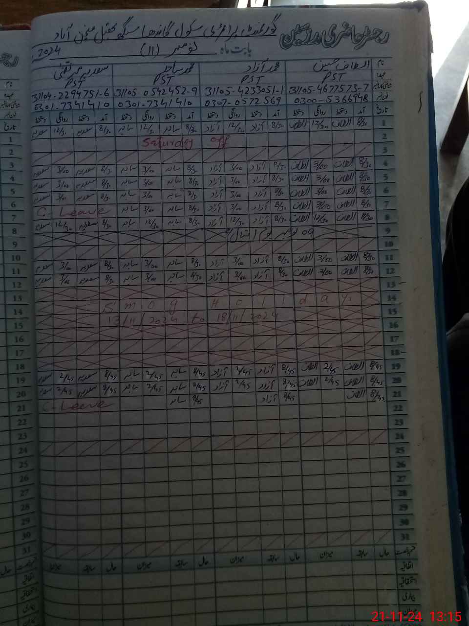 | 31**** | Sa**** Mu**** | PST | Regular | 0 | 0 | 0 | 0 | 0 | 0 | 0 | 0 | 0 | Casual |