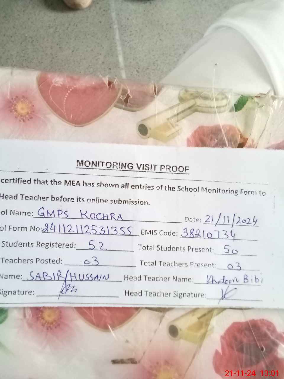 | EMIS Code: 38210734 | Name of School: GMPS KOCHRA | |||