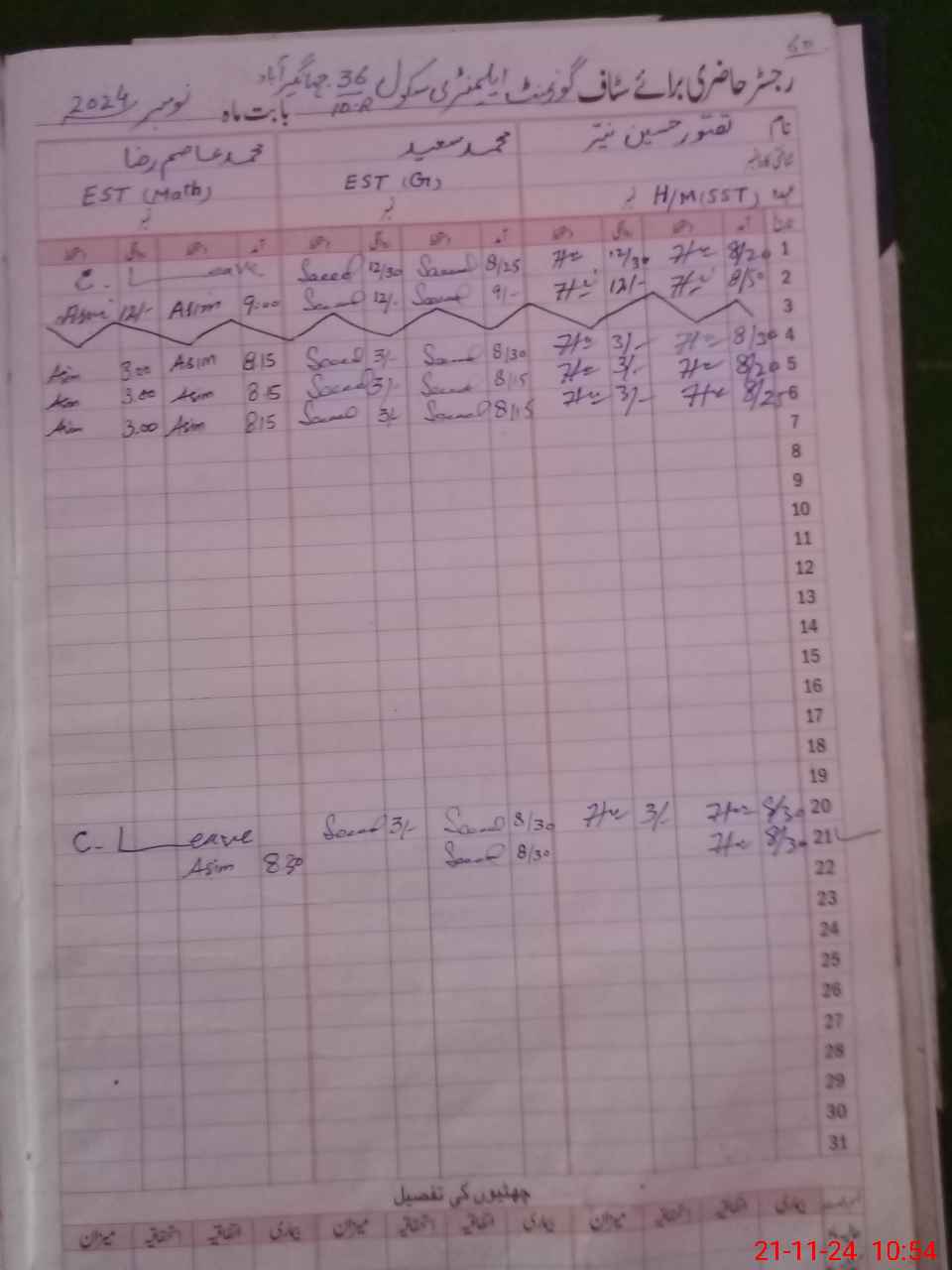 | CNIC | Full Name | Designation | R/C | Absence During Last Calender Month |